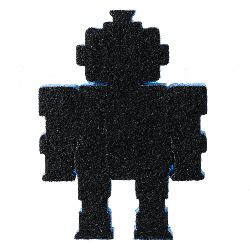 The Robot Sponge, in blue cellulose with a black medium abrasion scrubber, blends futuristic design with powerful cleaning action, tackling tough spots and everyday messes with style, personality, and high-tech flair.